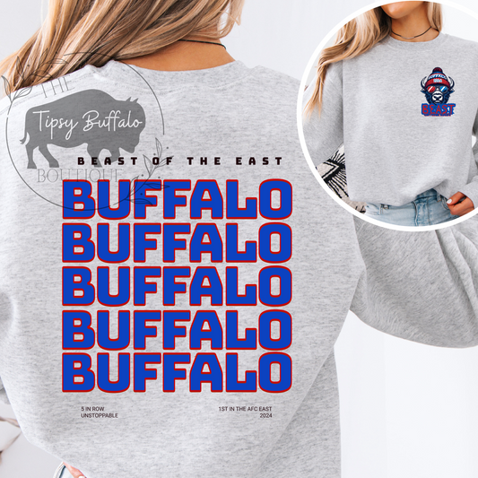 BEAST OF THE EAST CREWNECK SWEATSHIRT AFC EAST CHAMPS