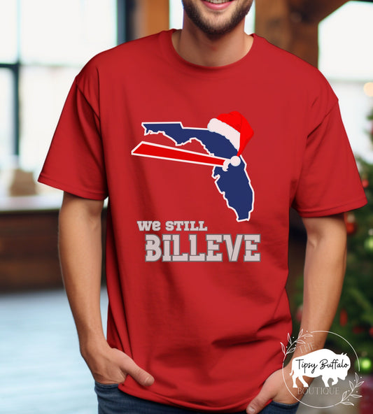 We Still Billeve Santa T-Shirt for Florida Buffalo Football Fans Snow Birds Xmas Tee bills fan gift, lets go buffalo, bills mafia